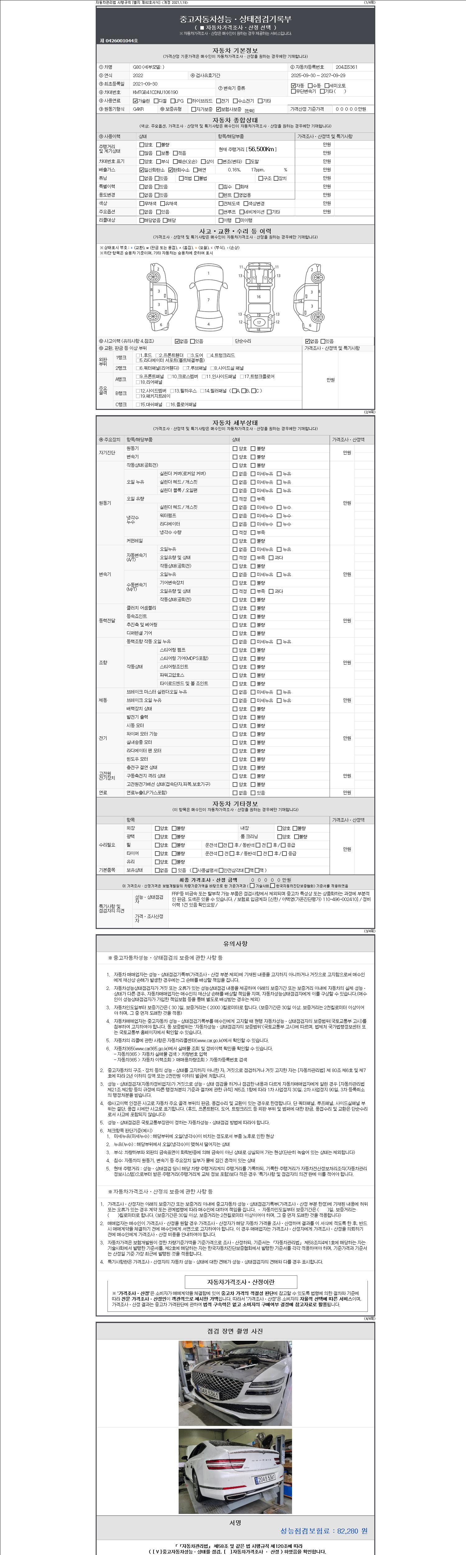 - 2. 차량 등록증이나 성능점검지 등을 상담자에게 요청및 확인하시고 사전에 미리 점검 하시기를 권유드립니다.