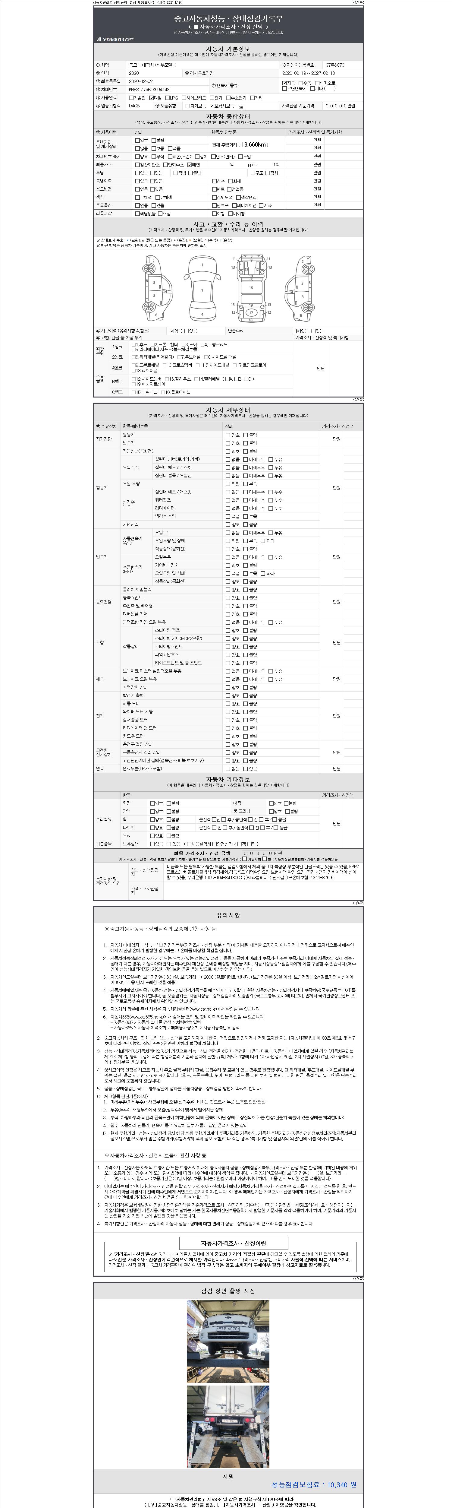 | 주행거리 | 13,660 km | 차량번호 | 97두6070 | 사고유무 | 성능기록부 참조 | 제시번호 | 제 2147483647 호 |