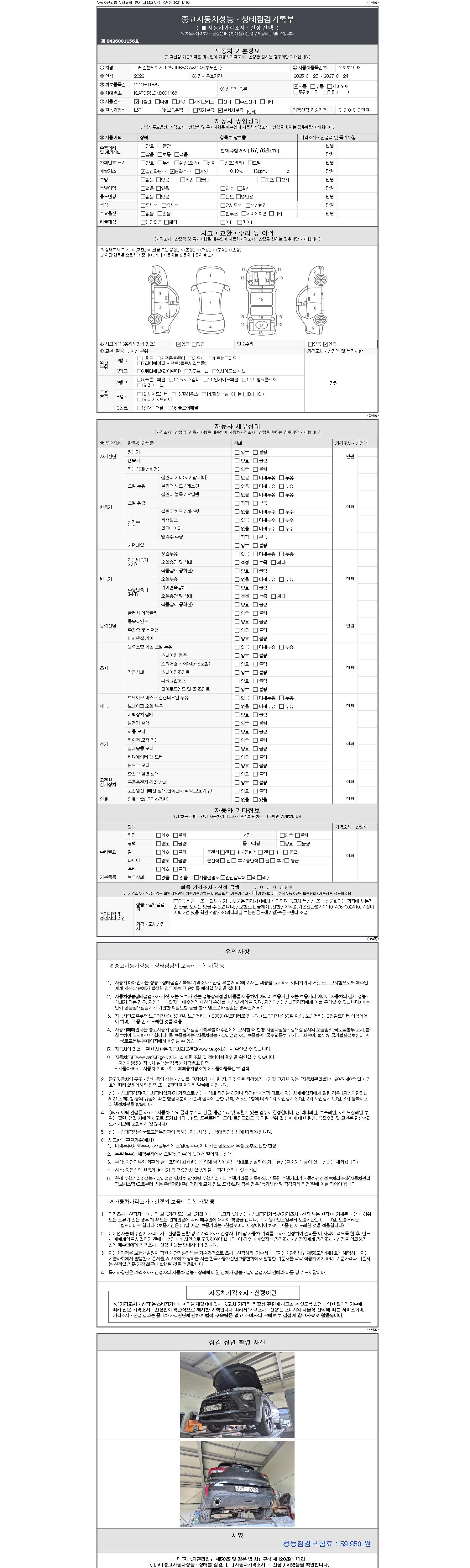 | 주행거리 | 67,762 km | 차량번호 | 322보1998 | 사고유무 | 성능기록부 참조 | 제시번호 | 제 2147483647 호 |