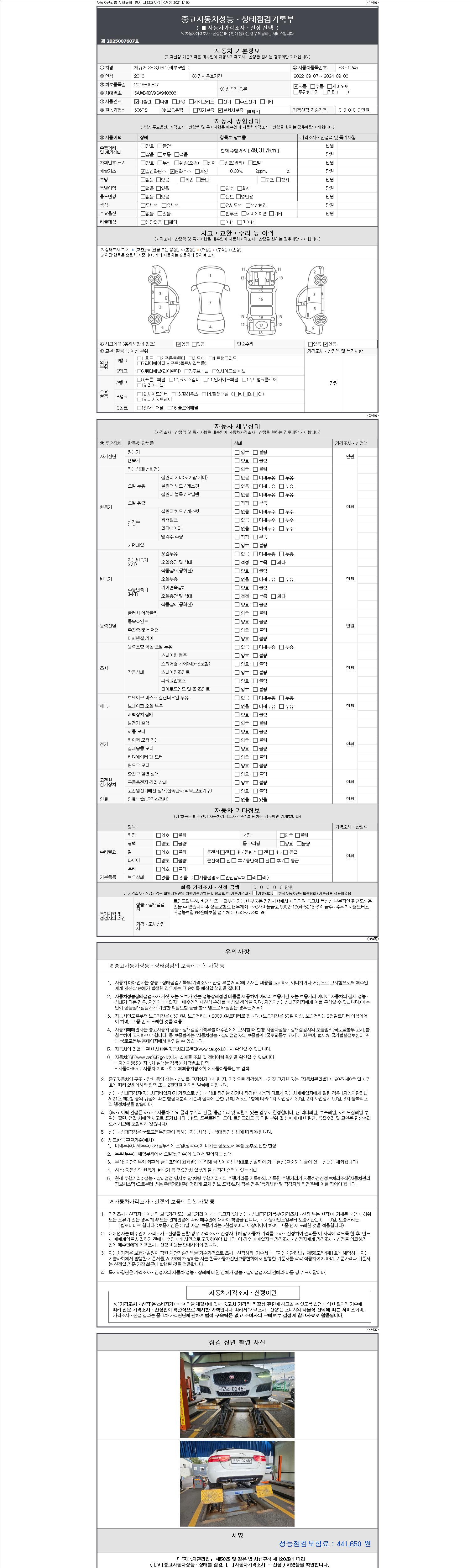 | 주행거리 | 49,317 km | 차량번호 | 53소0245 | 사고유무 | 성능기록부 참조 | 제시번호 | 제 2147483647 호 |