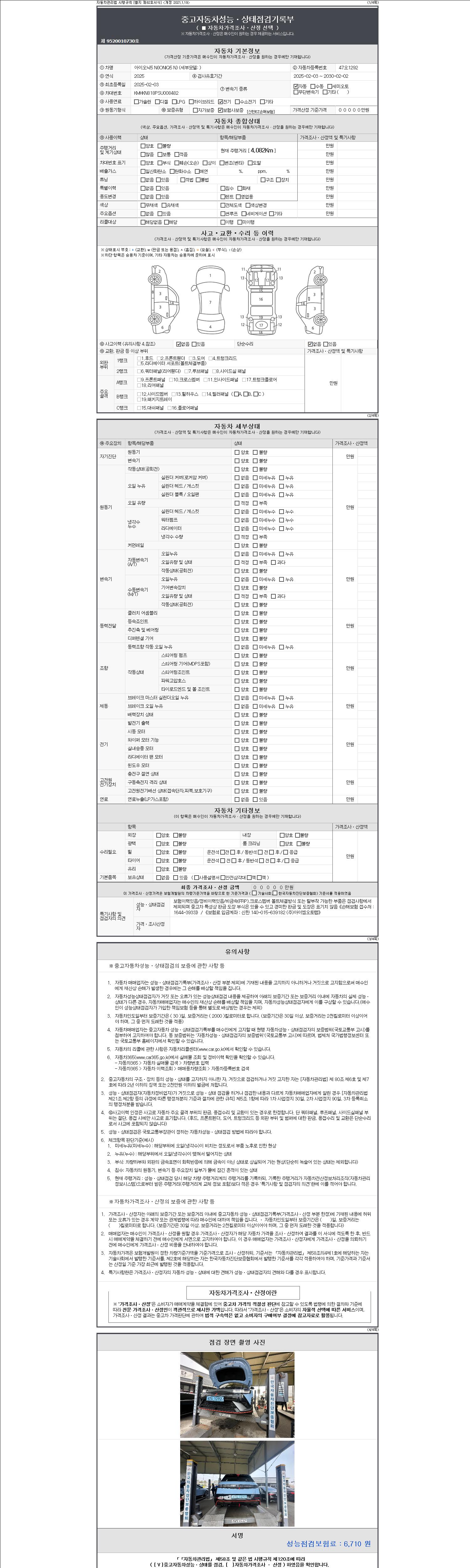 | 주행거리 | 4,082 km | 차량번호 | 47오1292 | 사고유무 | 성능기록부 참조 | 제시번호 | 제 2147483647 호 |