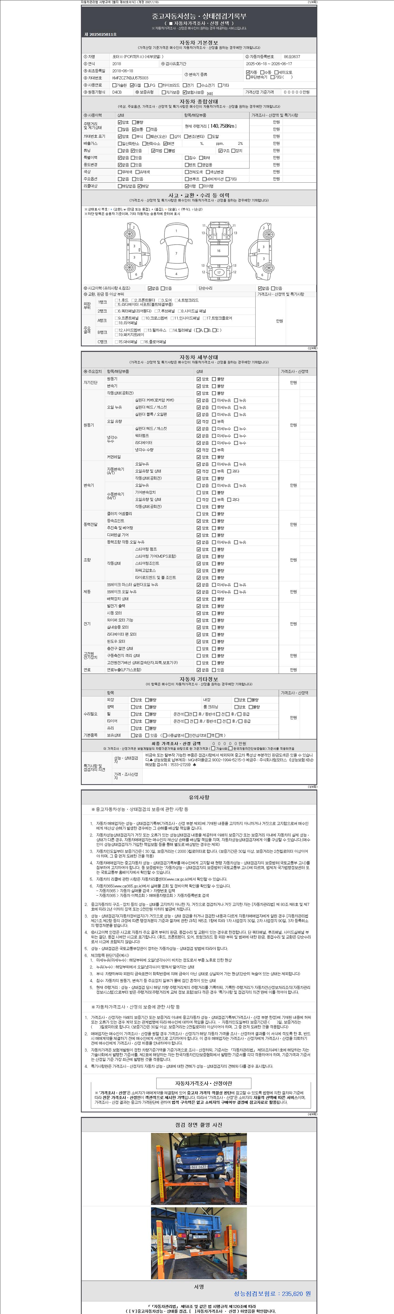 | 주행거리 | 140,758 km | 차량번호 | 86오0637 | 사고유무 | 성능기록부 참조 | 제시번호 | 제 2147483647 호 |