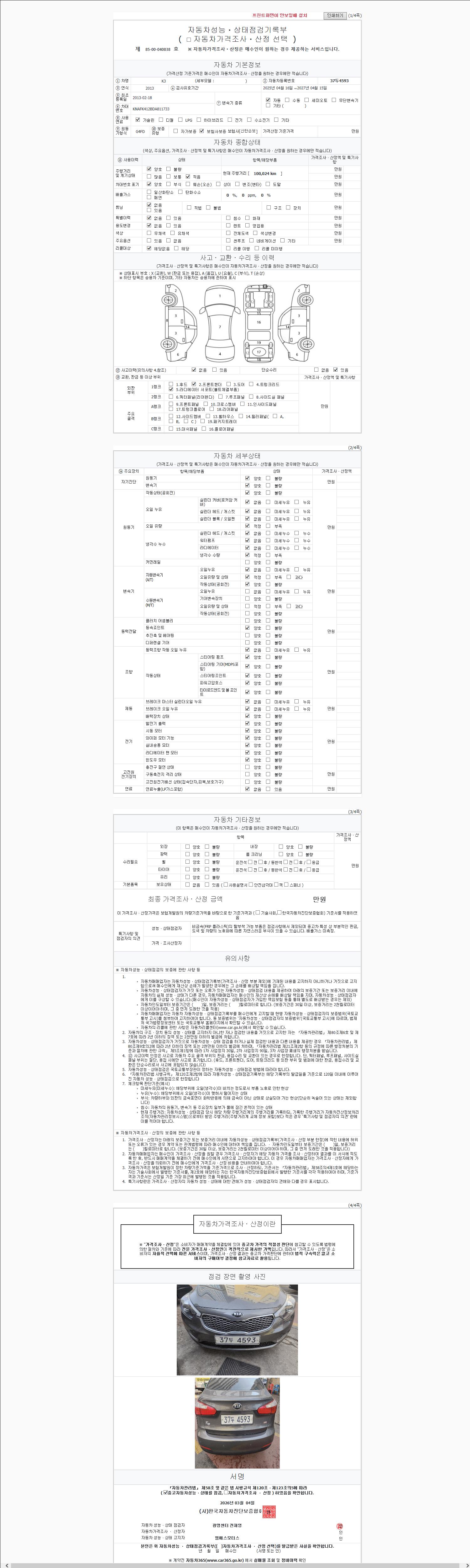 - 2. 차량 등록증이나 성능점검지 등을 상담자에게 요청및 확인하시고 사전에 미리 점검 하시기를 권유드립니다.