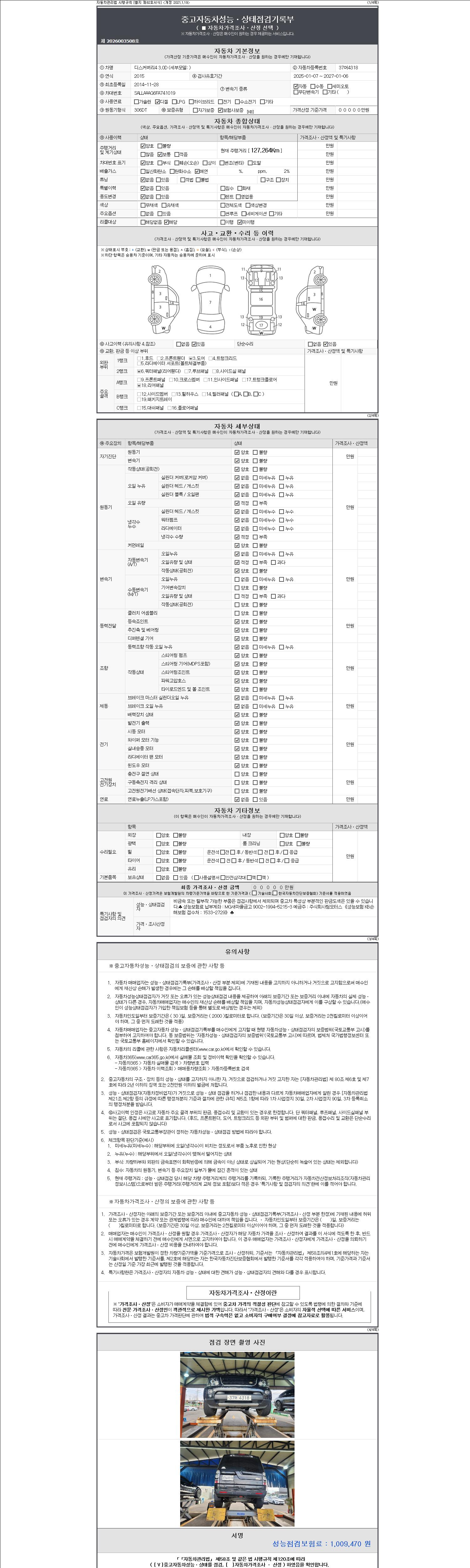 | 주행거리 | 127,264 km | 차량번호 | 37머4318 | 사고유무 | 성능기록부 참조 | 제시번호 | 제 2147483647 호 |