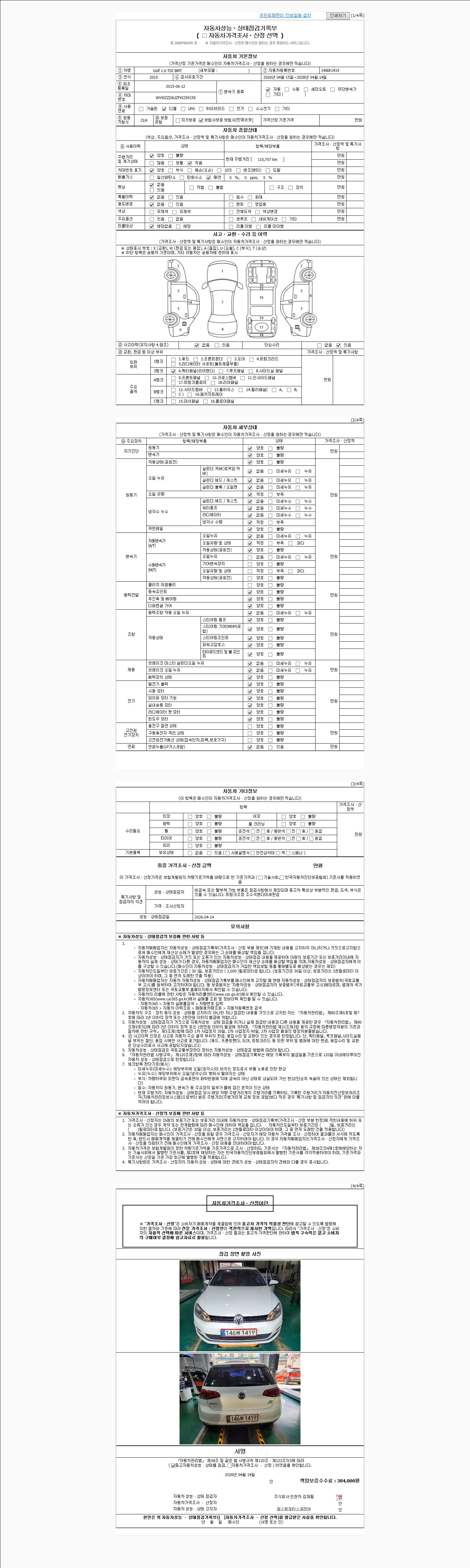 - 2. 차량 등록증이나 성능점검지 등을 상담자에게 요청및 확인하시고 사전에 미리 점검 하시기를 권유드립니다.
