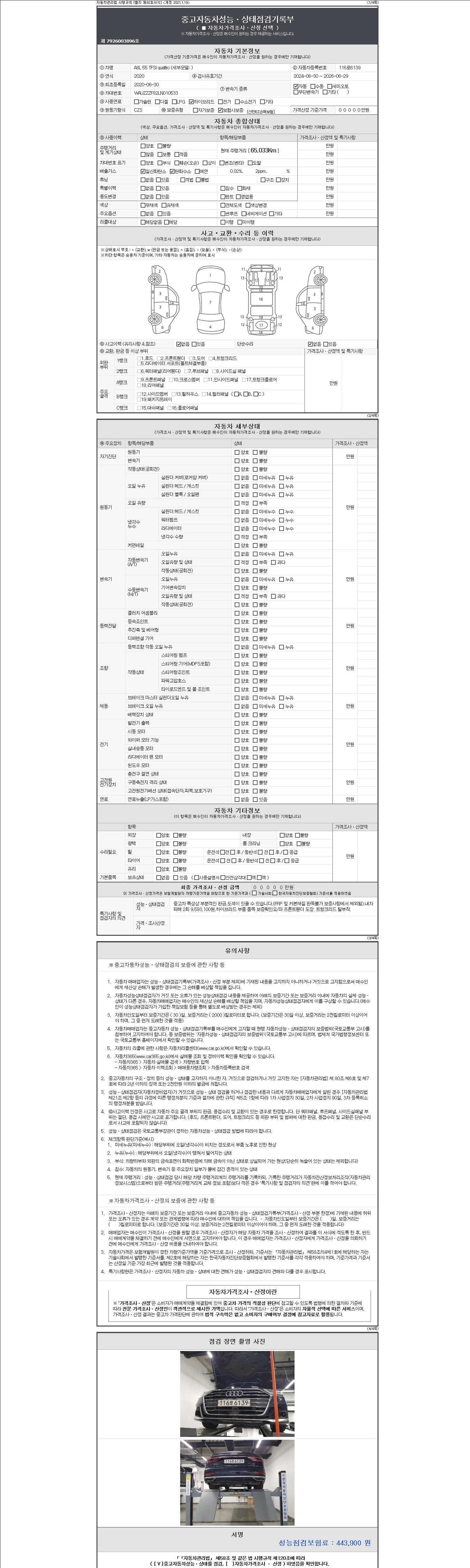 -중고자동차 매매업자를 통해 차량을 구입하실 경우 반드시 "중고자동차 성능, 상태점검 기록부"를 교뷰 받으셔야 하며, 매매업자는 반드시 의무 교부 하여야 압니다.