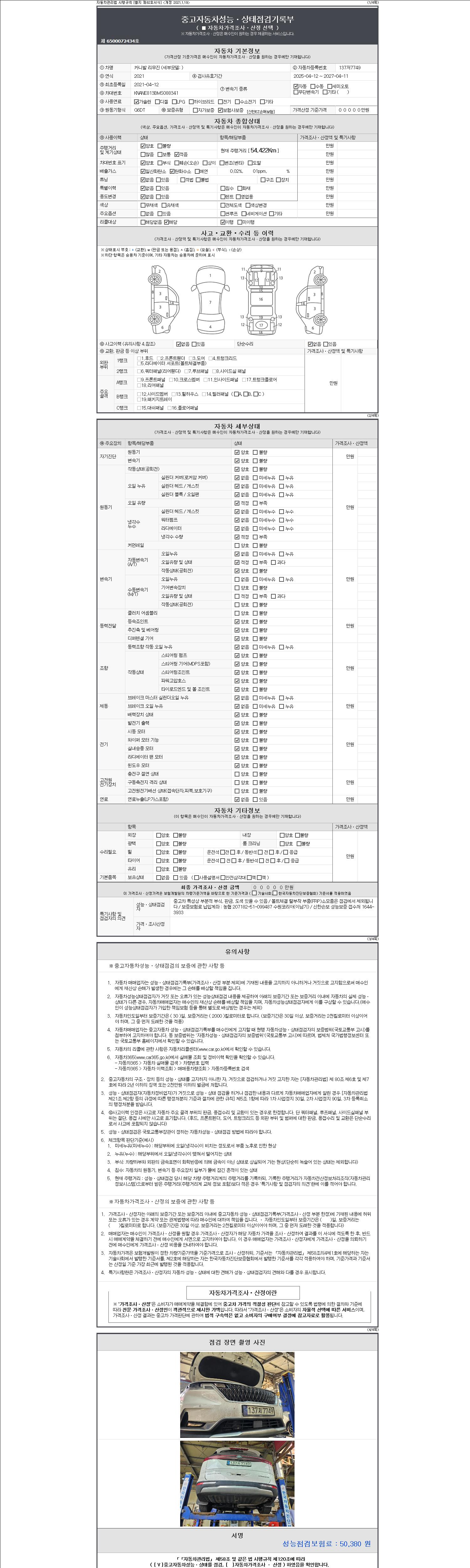 | 주행거리 | 54,422 km | 차량번호 | 137저7749 | 사고유무 | 성능기록부 참조 | 제시번호 | 제 2147483647 호 |