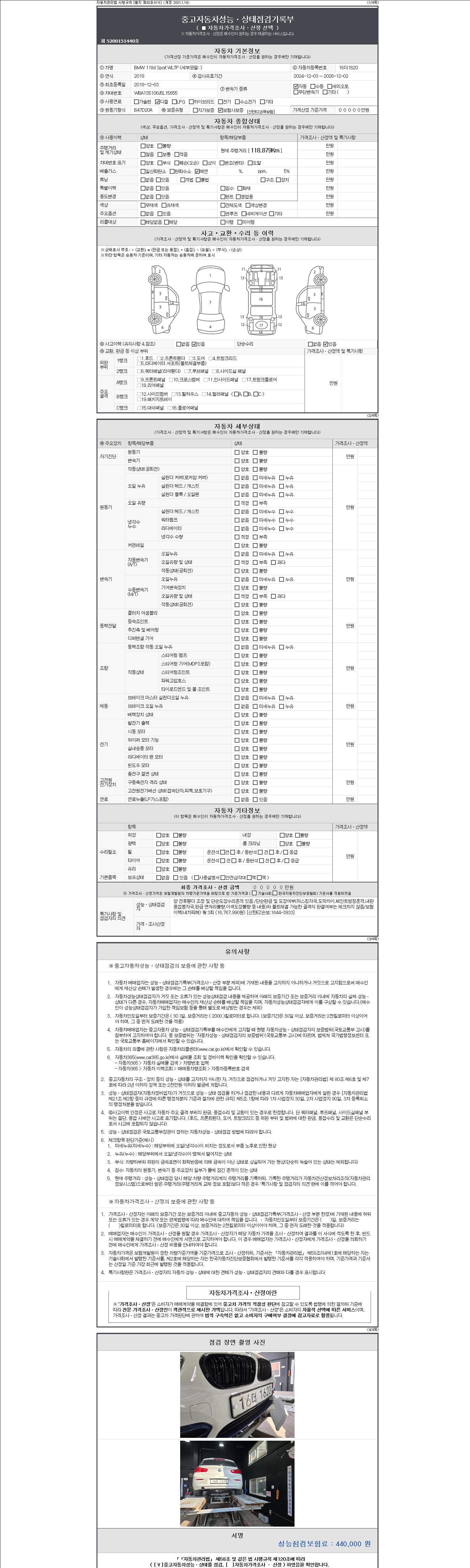 -중고자동차 매매업자를 통해 차량을 구입하실 경우 반드시 "중고자동차 성능, 상태점검 기록부"를 교뷰 받으셔야 하며, 매매업자는 반드시 의무 교부 하여야 압니다.